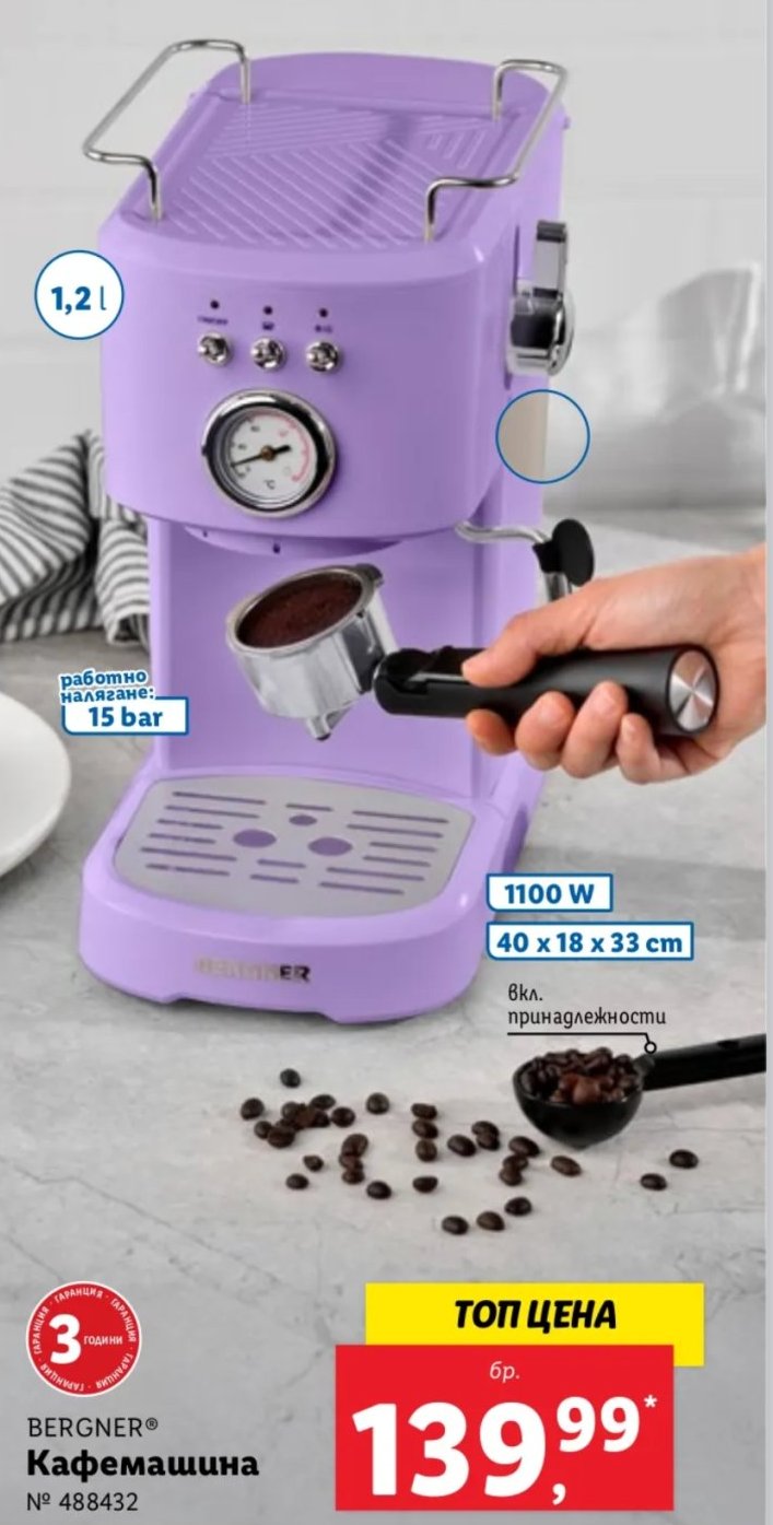 Търся мнение за кафемашината от следващата брошура. Марката не е на Лидл (SilverCrest), а Bergner.