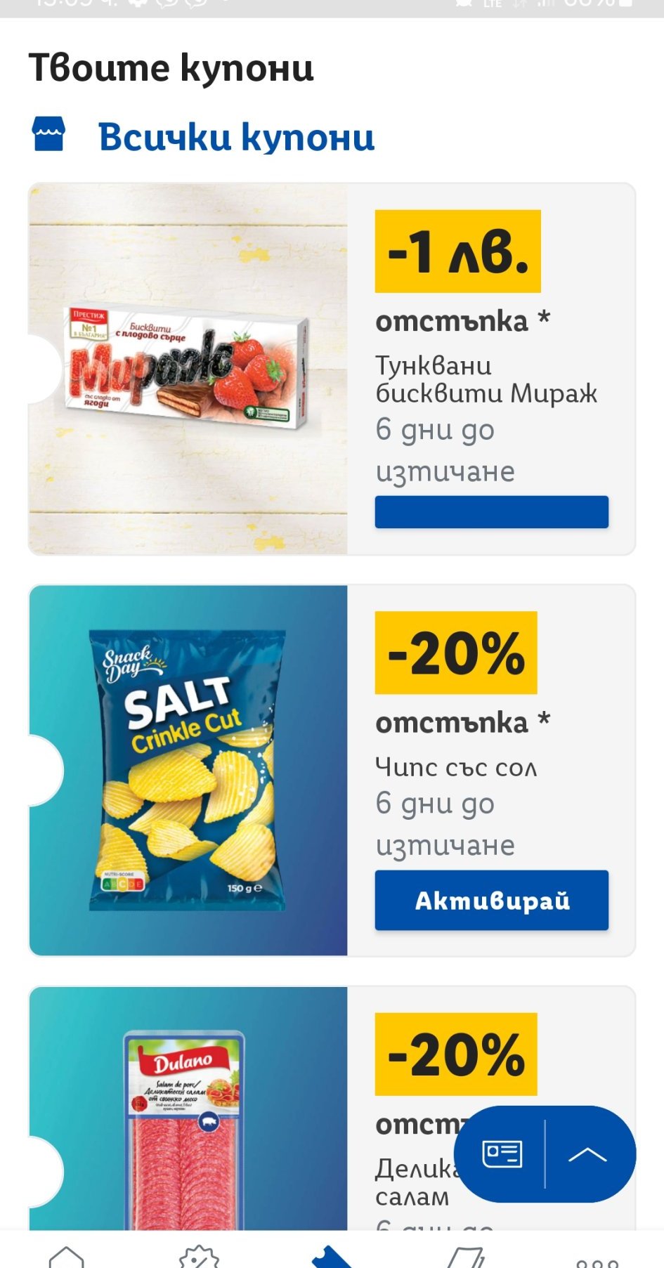 Ами аз пазарувам през ден в Лидл и всеки път сканирам карта и въпреки това откъм купони съм много зле, само усмивки получавам, а като гледам другите какво разнообразие на купони имат....