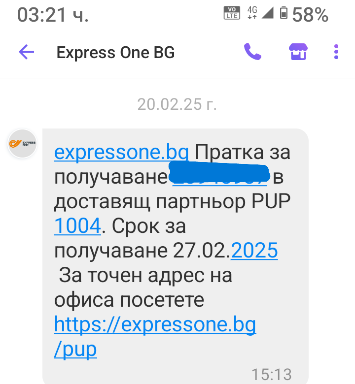 Получих съобщение по вайбър и там видях в кой PUP е доставена. Проверих на сайта и се оказа някакъв офис за застраховки с неудобно работно време от понеделник до петък. Утре ще ходя да го издирвам в квартала, но поне чакат една седмица да се вземе пратката. Ето съобщението и линк към страницата на сайта, където може да проверите къде се намира избрания за вашата пратка PUP: