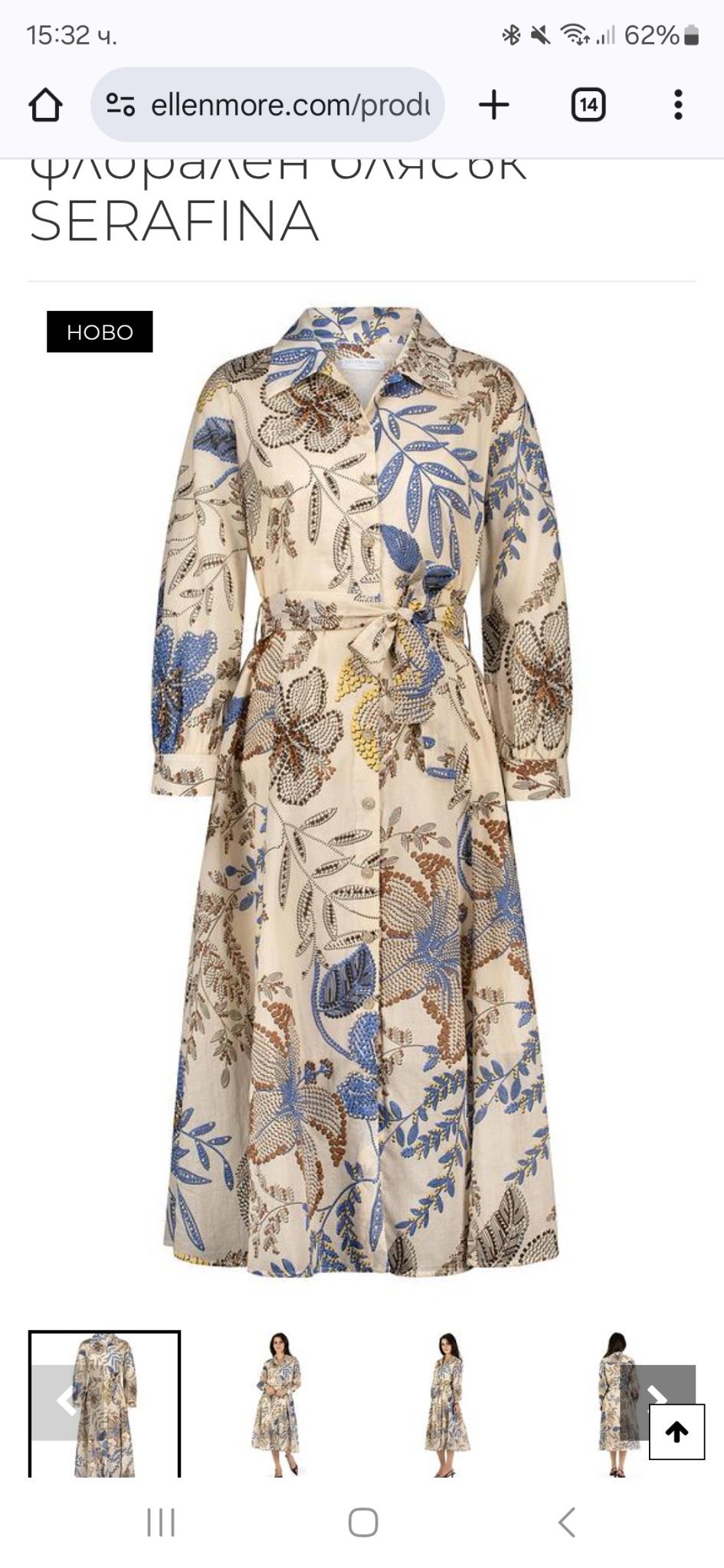 Аз мога да кажа какво мен ме смущава в роклята - на пръв поглед стандартна рокля риза /харесвам и нося/, но много е широка от горе до долу и мисля, че материята е твърда, не пада красиво, дава обем в ханша.