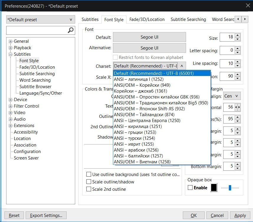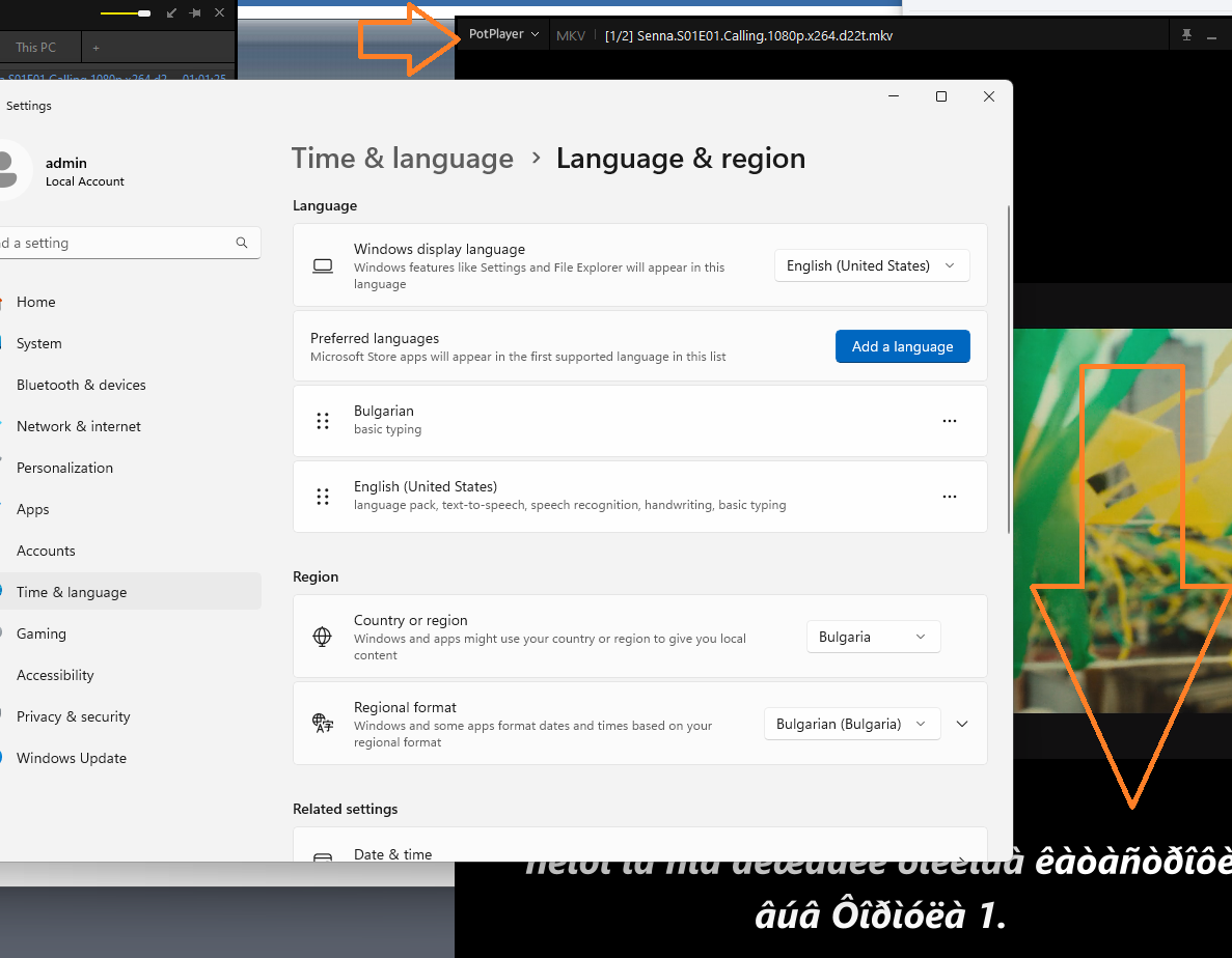 Качих Pot player  от офиц. сайт, няколко филма със субтитри си вървяваха добре, но тези на Senna (от DMCA-removal-from-Google) не ги чете на кирилица... на лаптопа са от (същия плеър), но на ПС-то (Win Pro 11) са в този вид: