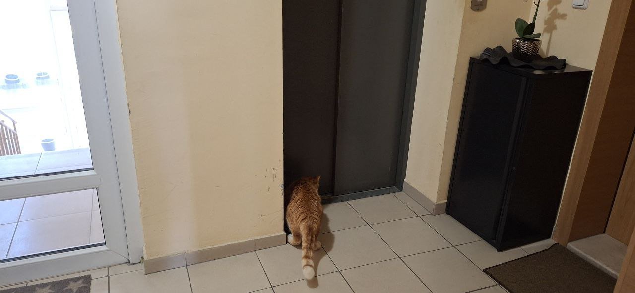 А аз пак да измрънкам... имам странното усещане, че Пиратчето има нужда от разнообразие. Не знам откъде идва тази ми убеденост, но съм сигурна. Когато е спокоен и се нахрани често стои, чака и мяука пред входната врата на апартамента. Отвори ли се веднага изскача навън. Преди малко го снимах как стои и се ослушва, души при асансьора след като вратите се затвориха след мъжа ми. Веднъж го бях оставила при такава ситуация пак да видя какво ще направи. Тръгна да влиза вътре с него.