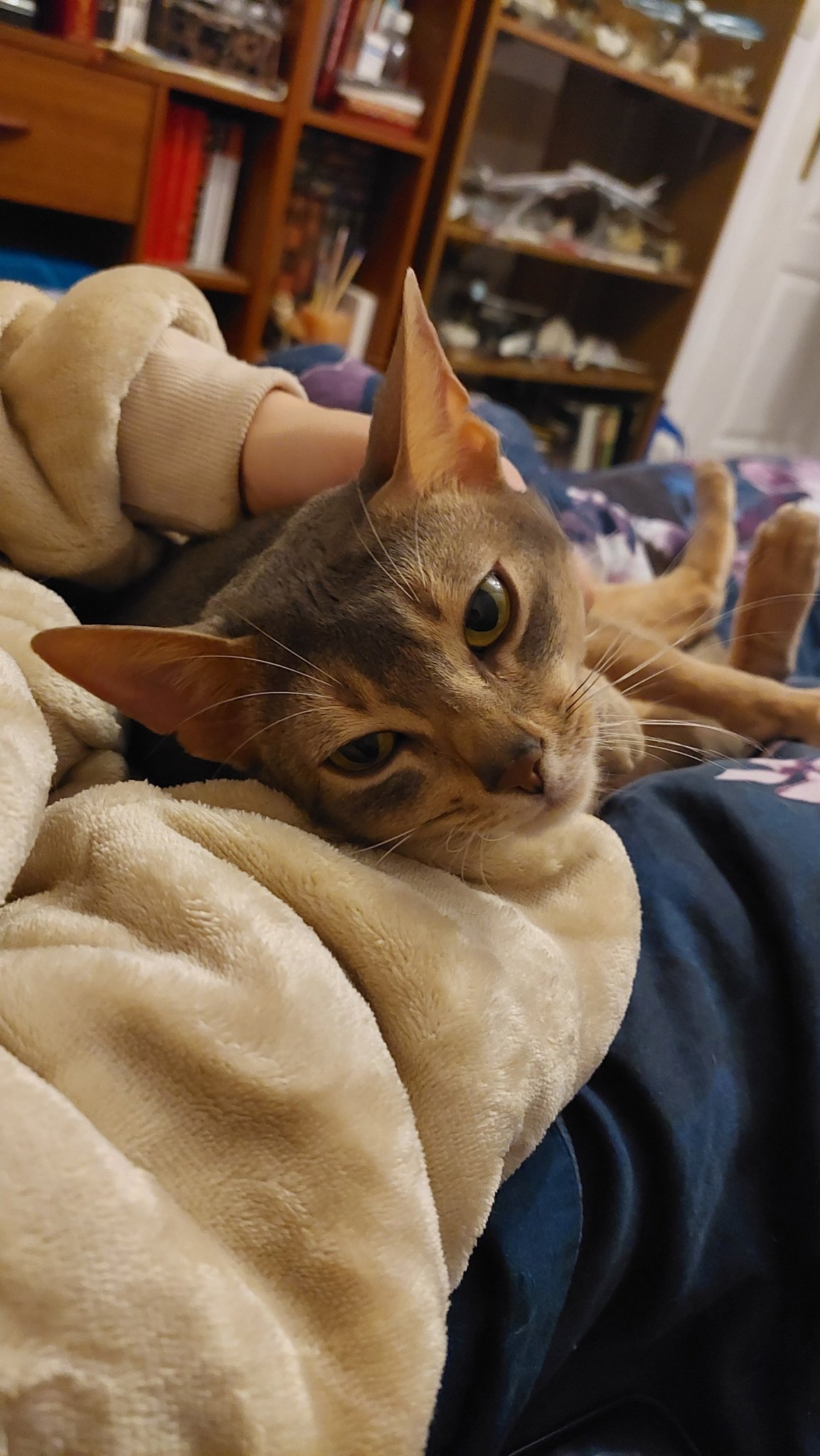 Ех, че деликатно Пиратче. Терата направо налазва и с мъркане и месене  изразява чувства. Но е сговорчива: ако я гушна и отместя до себе си, заспива и ме остава на мира.