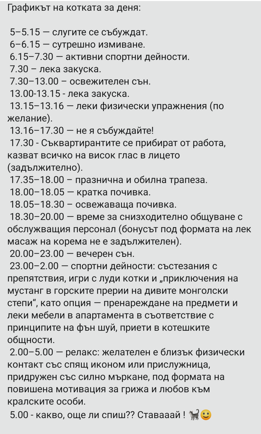 Или с други думи: сутрешен тъгъдък - спане - вечерен тъгъдъг - спане 😄
