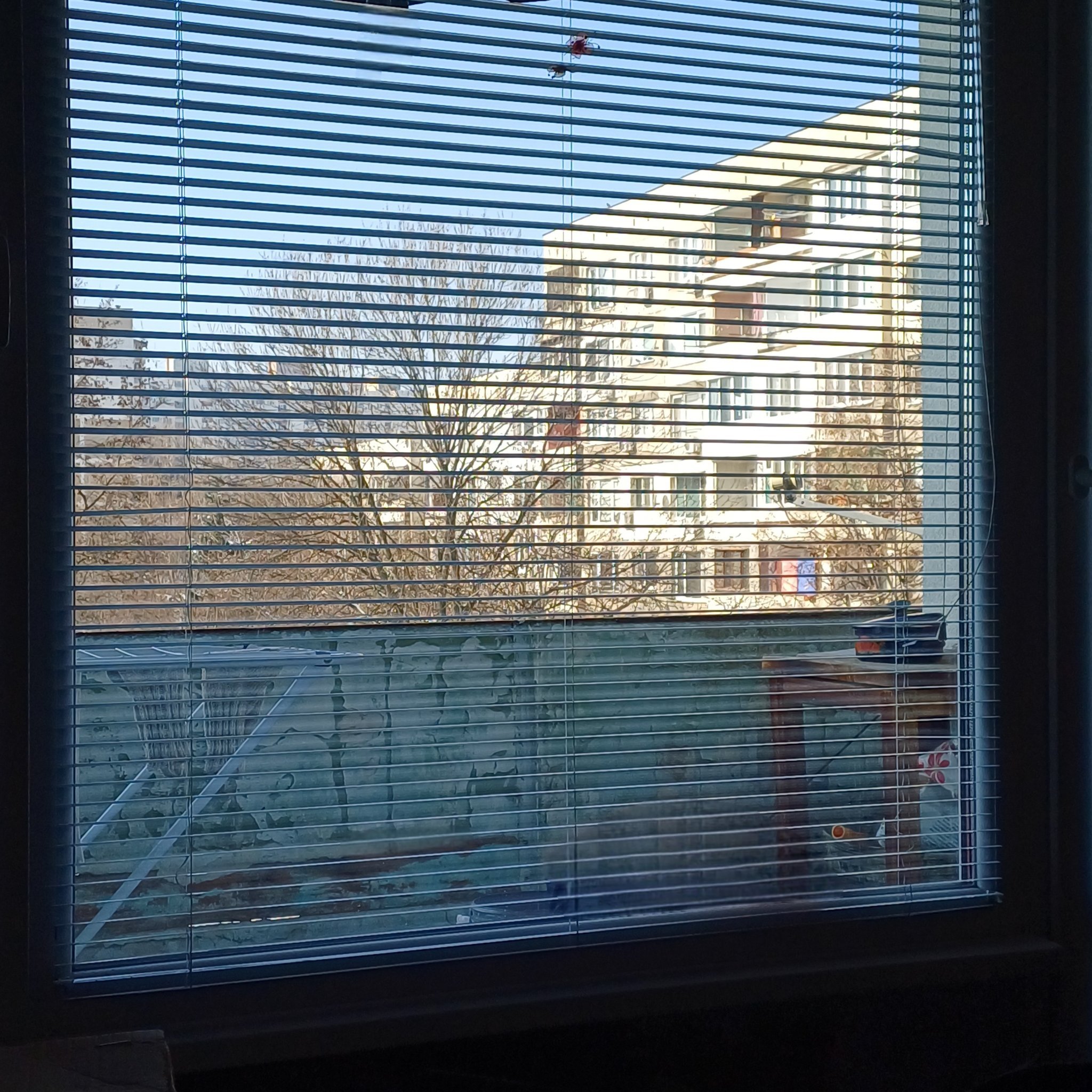 Една нахална крадлива сврака (горките пилета, как ли оцеляват в този студ) си е харесала нещо на балкона за отмъкване.