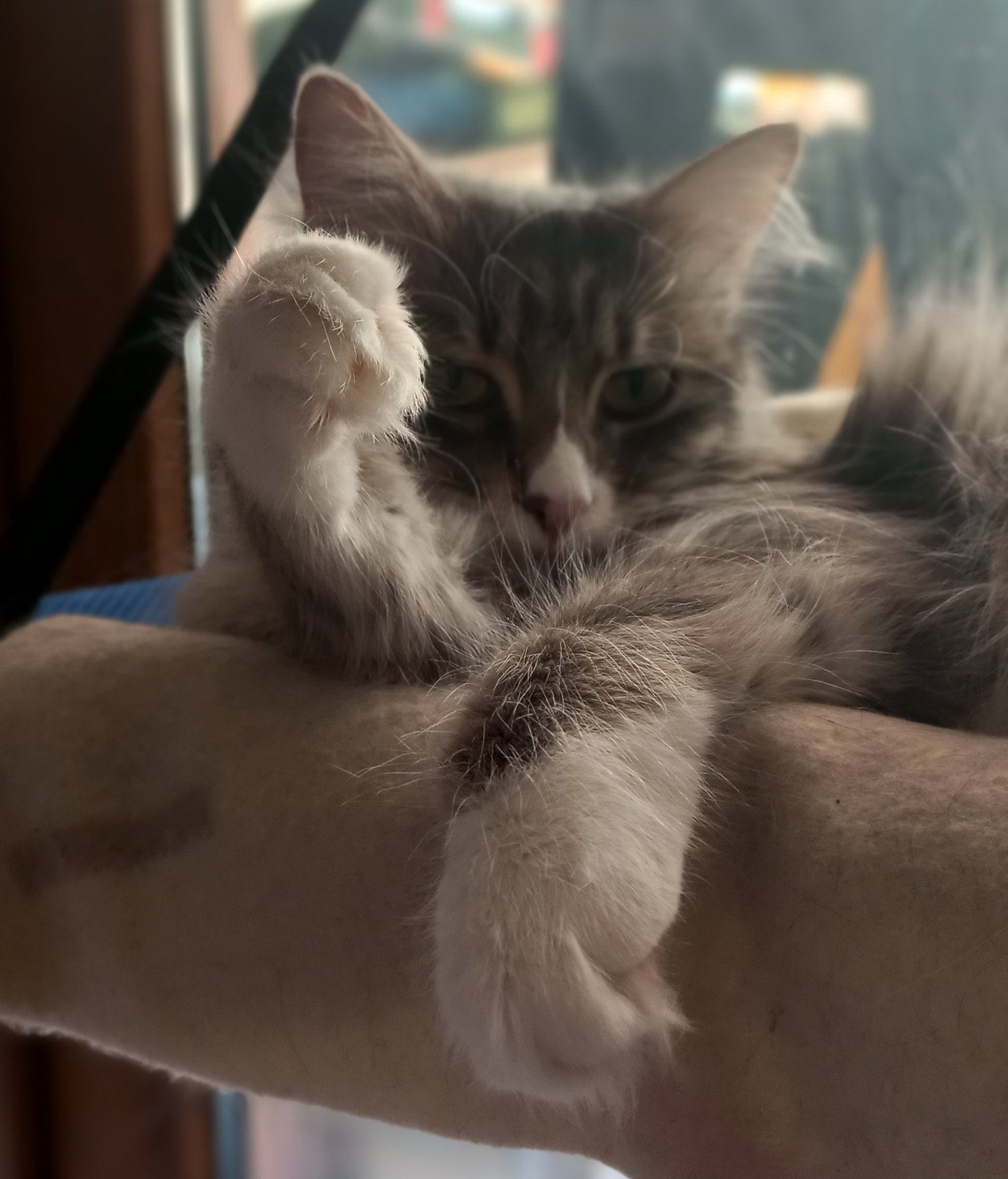 И сега да ви се "оплача" как ме преметна тая нощ. Идва гушка се, после се за игра и даже ме гризка лекичко - така прави когато сутрин не мога да отлепя бързо от леглото и се туткам, а е гладна. Ставам сънена и слагам консерва и си лягам, като си мисля, че е сутрин. Реших да погледна колко ми остава до алармата, а то 1.20ч уффф яяяя, заблуди ме това малкото 😁, ама я съм блейка да бях погледнала преди това. Поне ви изчетох. Сега отидох да видя, не е яла и се чудя за какво ме вдигна, беше ходила в тоалетната, ама може ли и за това да ме гърчи да му се не знае.