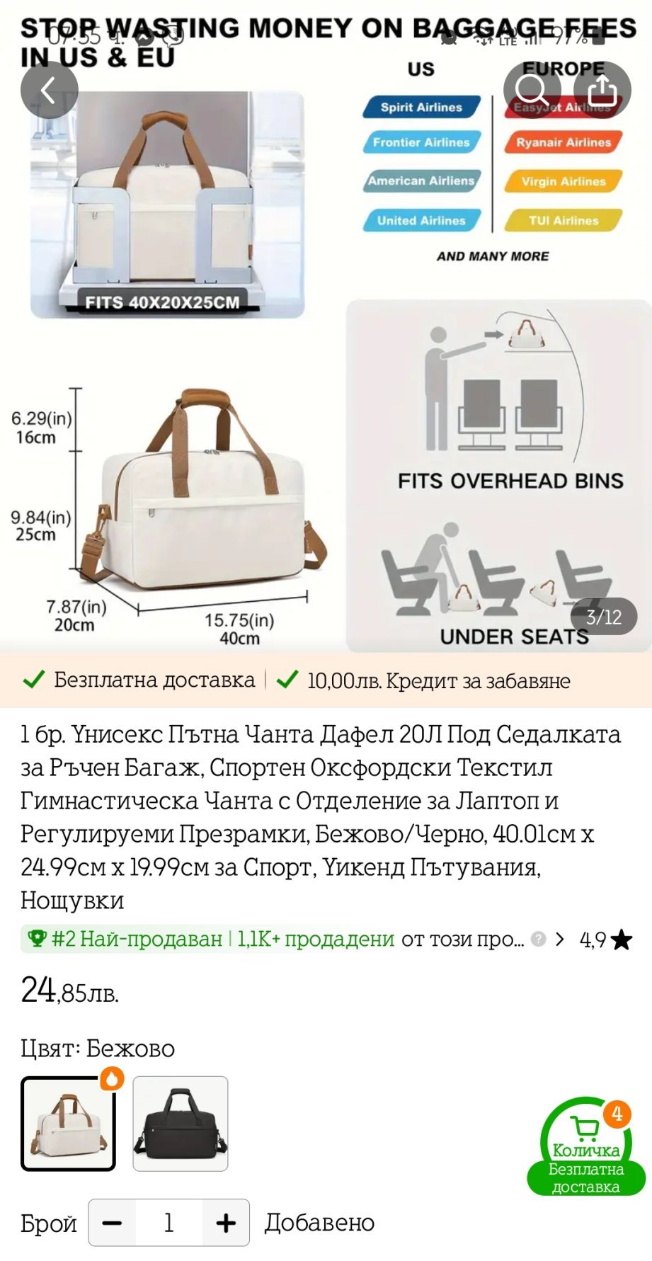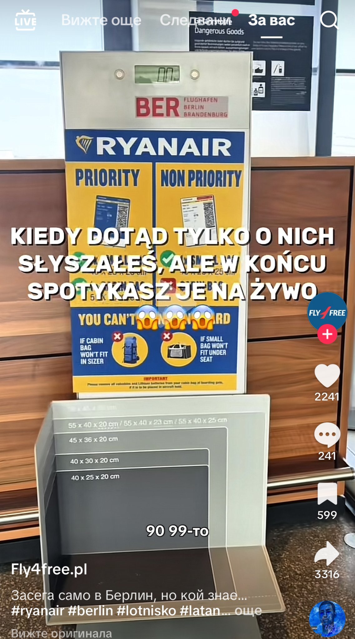 Размерите на ръчния багаж варират между авиокомпаниите. В момента Ryanair позволява максимални размери от 40 см височина и 25 см ширина, докато Wizz Air може да има малко по-различни спецификации. Препоръчително е да проверите изискванията преди пътуването, особено ако влияят на опаковането на багажа.