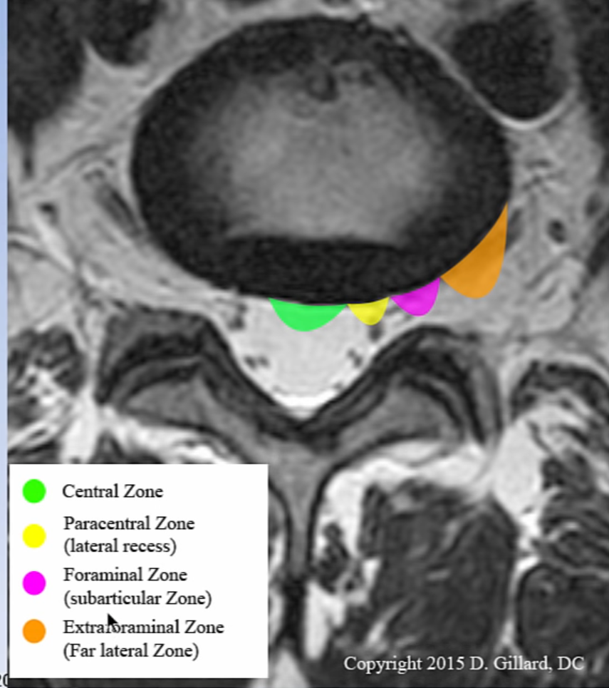 На ниво Л2-3 има дискова херния, вдясно, която е в странична (фораминална означава изпъкнала към форамена) позиция. Притиска нерва, който минава през форамена. Фораменът е дупката, която нервното коренче пресича и от там се разкроява. Ако нервът там е притиснат заради хернията на диска, започва да страда и да не храни добре мускулатурата (на бедрото, когато херниите са в горните лумбални дискове, т.е., Л2-3-4). Много е трудно на Л2-3 да се прекършиш така че да си "скъсаш" диска. Затова ми стана интересно как си е докарал хернията на това ниво. Обикновено хората си прецакват долните лумбални дискове - Л4-5 и Л5-С1. При мъжа ти има протрузия на Л4-5 отново в същата позиция - фораминално притиска нерва. Протрузията е издатък от диска, издуване на диска в посока форамена, който издадък, обаче, не е скъсване на диска. Диска си е цял, но деформиран. И там където е деформиран и издут, тази издатина притиска нерва около форамена. Екструзия е разкъсан диск, а протрузия е цял диск.