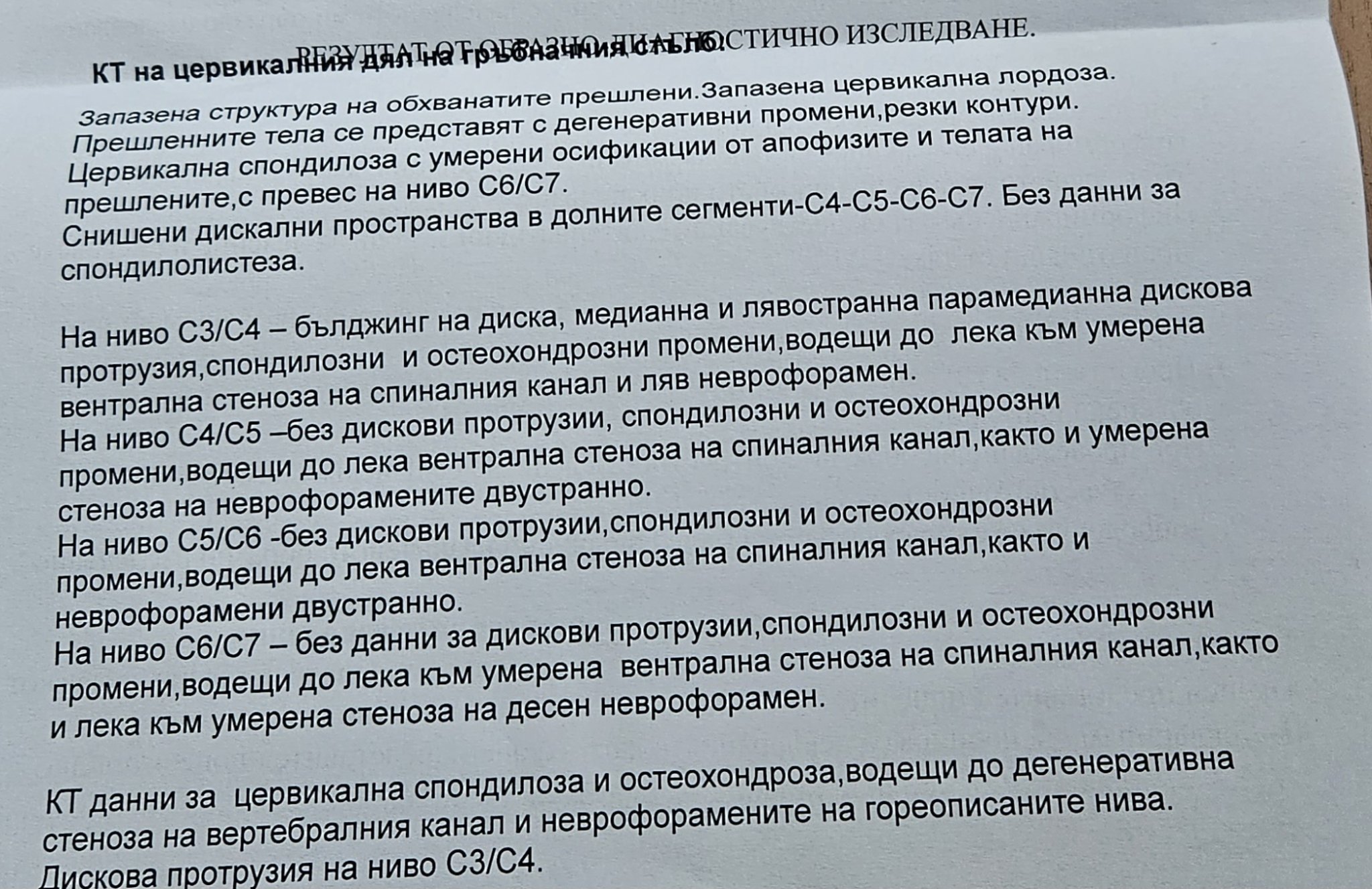 И така времето си минава... безработен... не мога да стоя прав прпдължително време, нито да седя.. и се лутам, но за това искам да ми препоръчатв неврохирург за друго мнение.. благодаря на отзовалите се