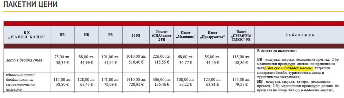 според ценоразписа се включват 2 процедури (без сух и подводен масаж), т.е. сухи процедури, които мога и в моя град да си правя (тоци, ултразвук, лазер и др.), а водните, заради които ще отида там, трябва да си ги доплатя? правилно ли разбирам?