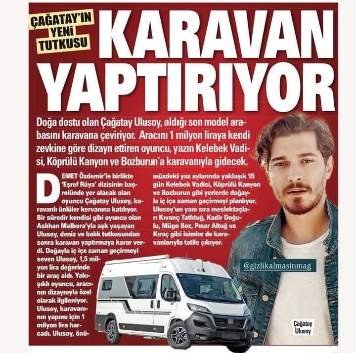 Като човек, който обича да прекарва времето си сред природата, Çağatay Ulusoy похарчи 1 милион лири, за да направи каравана си специално проектирана.