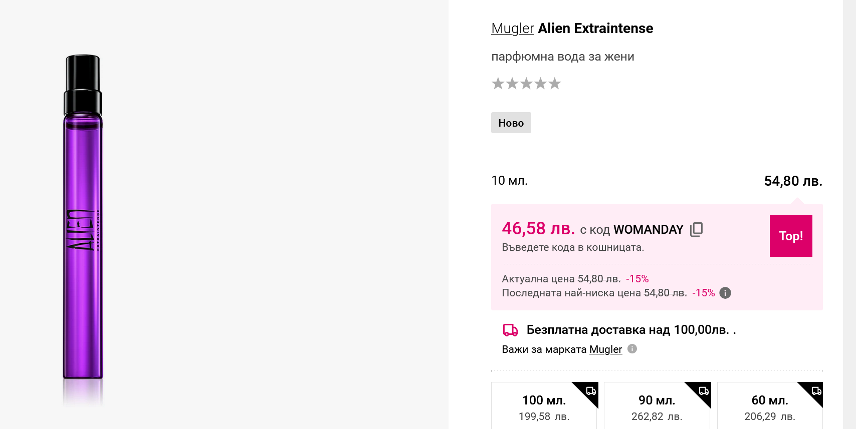Ох, тези Парфимо и техните цени. Преди 2 дни беше 93 лева за 30 мл този Алиен. Пффф