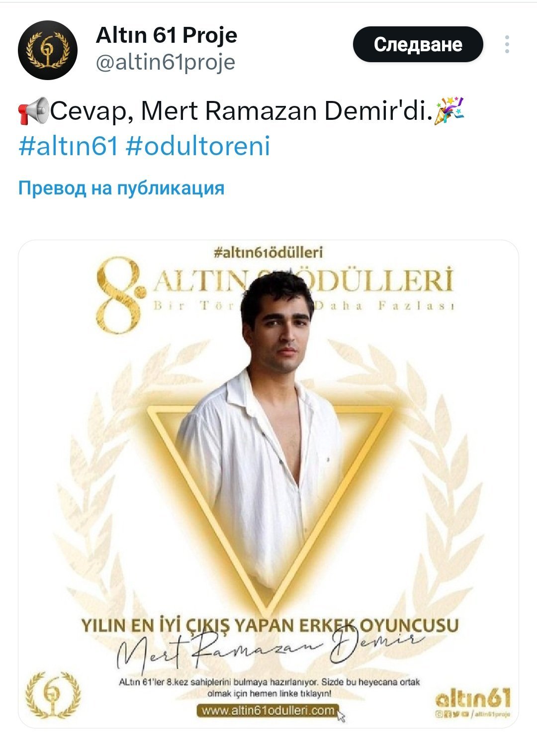 Метровата награда е от 2022 г. На страницата си в Х, тези са питали дали някой си спомня кой е спечелил наградата за Най-добър актьор - откритие на годината!