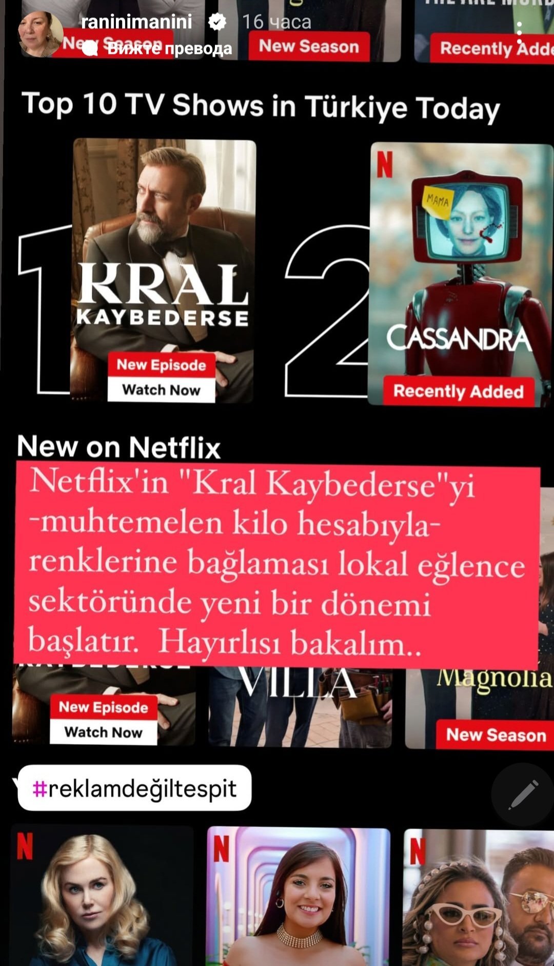 Ранини, журналистката, съобщава за нова ера в развлекателната индустрия- Кралят е в Нетфликс.