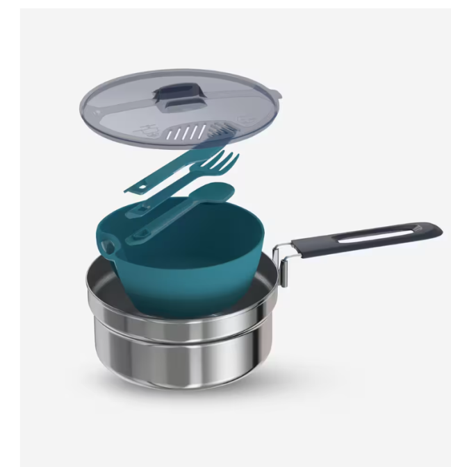 За път вече няколко години ползвам схемата - готвено, обърнато на капачка, докато е вряло. Охлаждам през нощта в хладилника и нося в термочанта с охладители. За затопляне инвестирах в преносимо газово котлонче, което работи с флакони газ и такъв комплект от Декатлон: