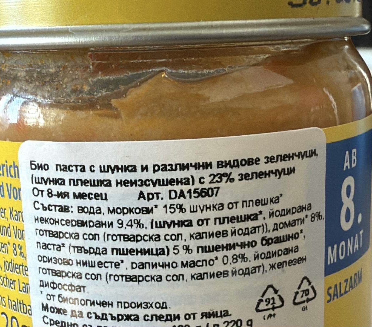 Иначе, ако пюрето е на Bebivita, аз като цяло съм с добри впечатления от техните неща. Взимала съм чисто зеленчукови и едно с кускус и зеленчуци 3 или 4 пъти, докато захранвах.
