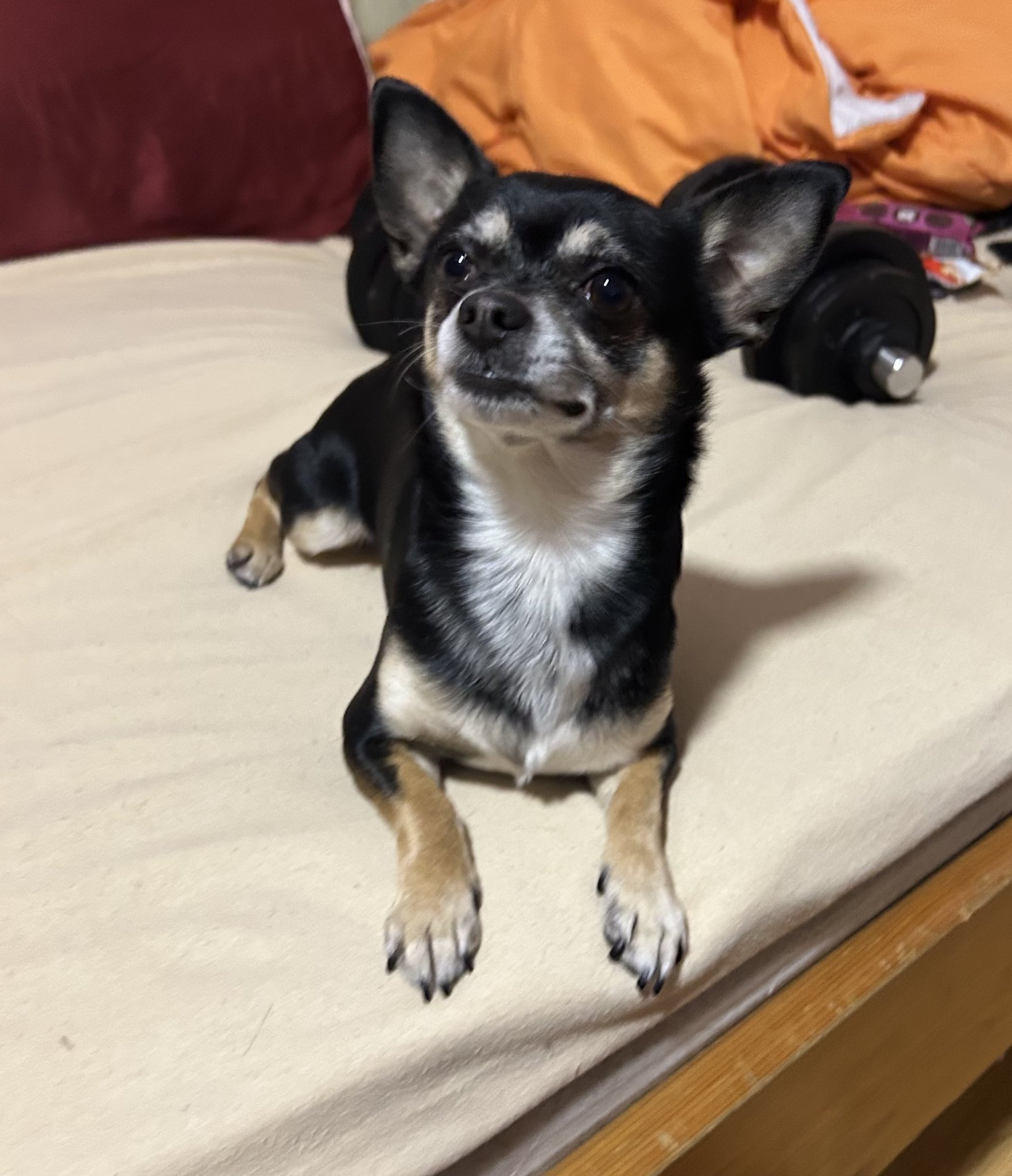 Ето го и Арчи 2. Той е чихи еленова глава. На 3,5 години е и тежи огромните 3,200 кг. Мисли се за истинско куче 🙂. Показвала съм го преди като го взехме на 3 месеца. Горкия тогава беше 180 грама, и се събираше в шепата ми, беше колкото синята част на маската за лице 🙂.