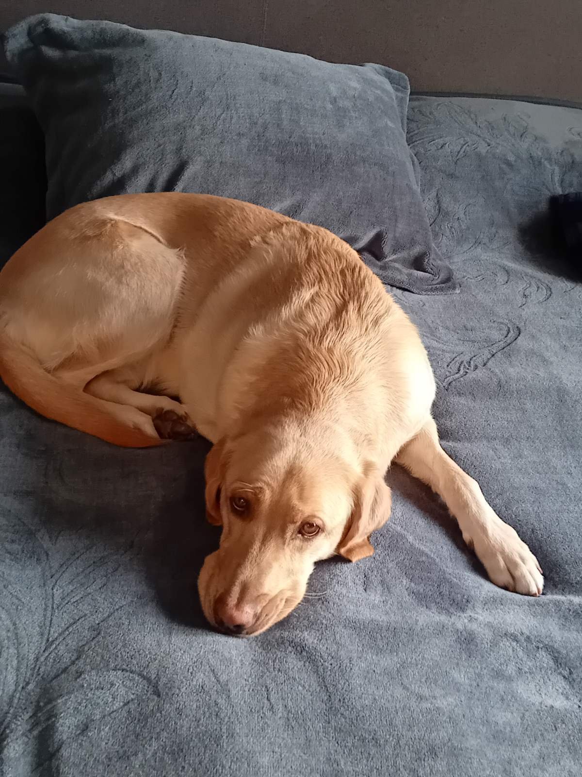 Ха-ха, и аз с 30 кг. магаре в леглото. Заспивам с котката в краката, по някое време Зара изгонва котката и се мушва тя под завивката. А като реши да ме прескочи и да легне от другата ми страна, само пазя ребрата и викам Ох, ох, сутринта ще гледам щетите. Цялата съм в синини като бита.