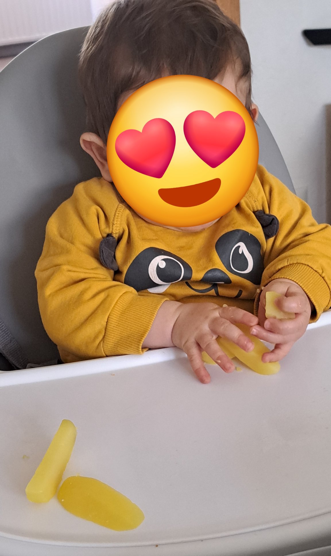Минавам да се оплача. Прибрахме се на 22ри в Германия, бях пуснала поръчка в дм за разни неща и готови пюрета поне за обяд и десерт за месец горе-долу, защото грам не ми се готви. И какво мислите стана? Моят хубостник от тогава прави стачка на пюретата и кашите, само сутрин и вечер яде като преди филийките си. Днес предлагам поредно пюре, отказ категоричен след първата лъжица. И ми хрумна да пробвам да му дам парче, ама какво да му дам така набързо, един банан му нарязах. Ей толкова бързо не беше ял, честно ви казвам. От там нататък сложих и един картоф нарязан на пара да стане, голямо мрънкане докато се свари и после човека яде резенчета. А така ми се иска да си яде пюретата и поне за известно време да си спестя разправията с готвенето...