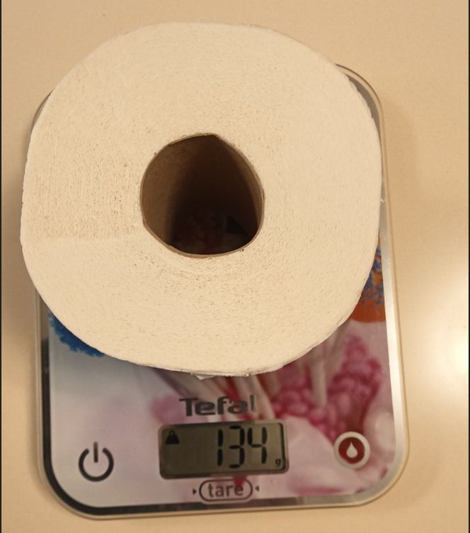 За тоалетната хартия по-скоро на брой късове, че все пак като посегна към ролката не го правя с кантарчето в ръка и да си развивам до определен грамаж Grinning