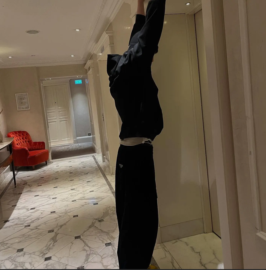 Понеже все се шегуват с  ръста и дългите му крайници (някакъв америскански влогър беше коментирал  "колко е висок този човек 7 фута ли?")  тук явно им показва че като се протегне вярно гони 3-те метра Joy