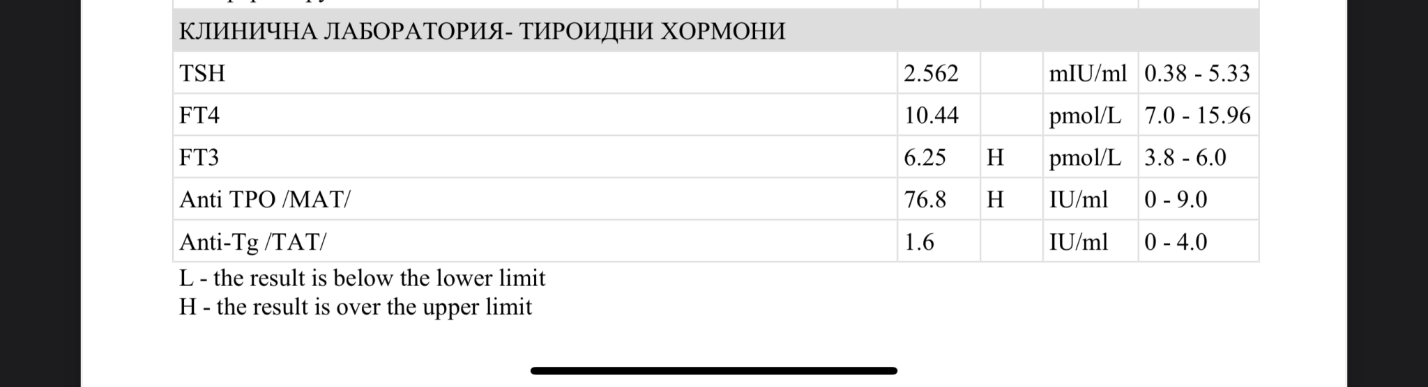 Преди месец се разболя от грип/друг вирус и от тогава все още не може да се оправи, мина през всякакви лекари и в крайна сметка му казаха да види отново щитовидната. Съответно излязоха следните резултати: