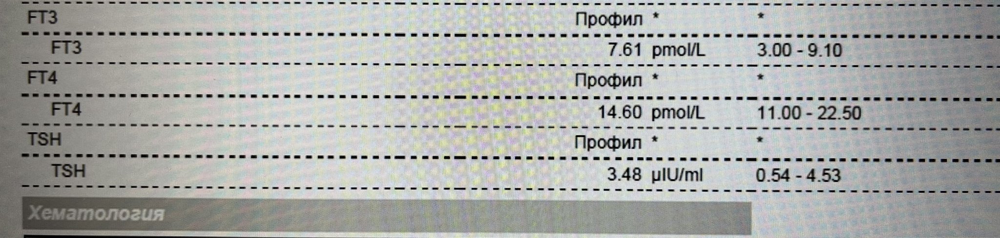 ЩЖ е ОК при нас на ехограф. И вит. Д и В 12 бяха на горни граници през есента. Междудругото за първи път чух, че ФТ4 се повлиява от приема на някои витамини от В-групата. Т.е излизали по-ниски стойности при изследванията и “замаскирали” реалното ниво на ФТ4. 🤨