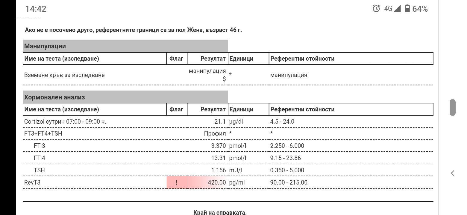 gyga, аз виждам, че хормоните ти още не са оптимални. Иначе реверсивния Т3 наистина е стряскащ, но не мога да кажа повече.