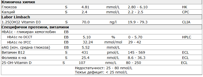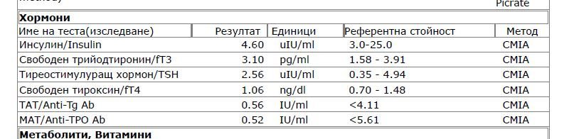 Относно Варицелата - не знам доколко е повлияла на резултатите. Както се вижда, всичко уж е наред. Даже Инсулинът ми е перфектен. Глюкозата също е супер.