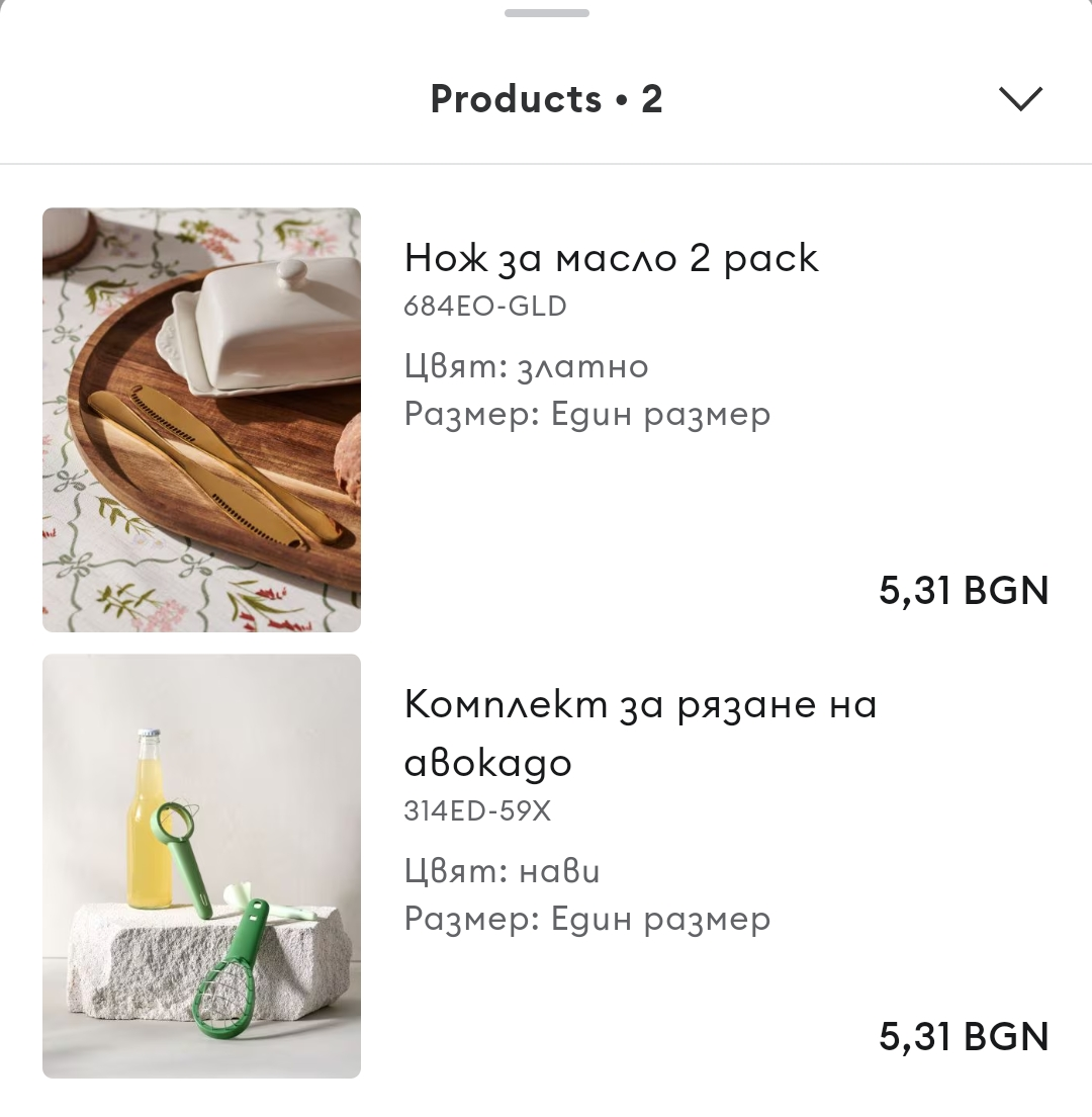 Другата част от поръчката са комплект ножове за масло. Очаквах да са по-малки (другите, които имам, са мънички, а и на снимката по-малки ми изглеждаха), но са си с размер на нормални прибори. Доволна съм и от тях.🙂