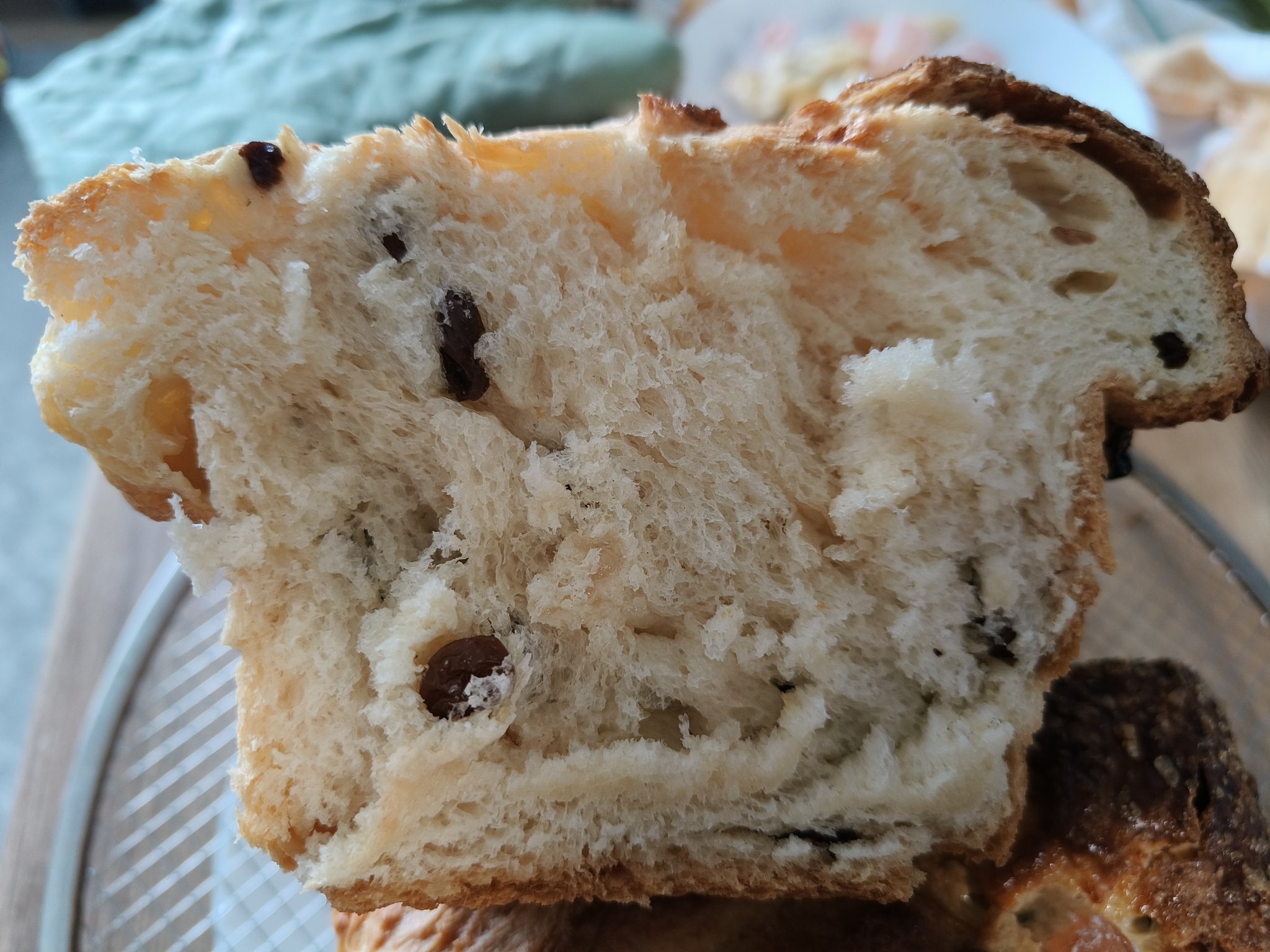 Добре си изглежда козунакът отвътре. Просто е много малка тази формичка. Ако плитката беше в обикновена тава във фурната, щеше да се раздуе хубаво отвсякъде и да се оформят конците. Един козунак трудно може да превтаса, защото тестото е доста сладко и без друго втасва бавно. Ако държите да е в тази малка кексова формичка, плитката трябва да е поне с 2/3 по-малка.