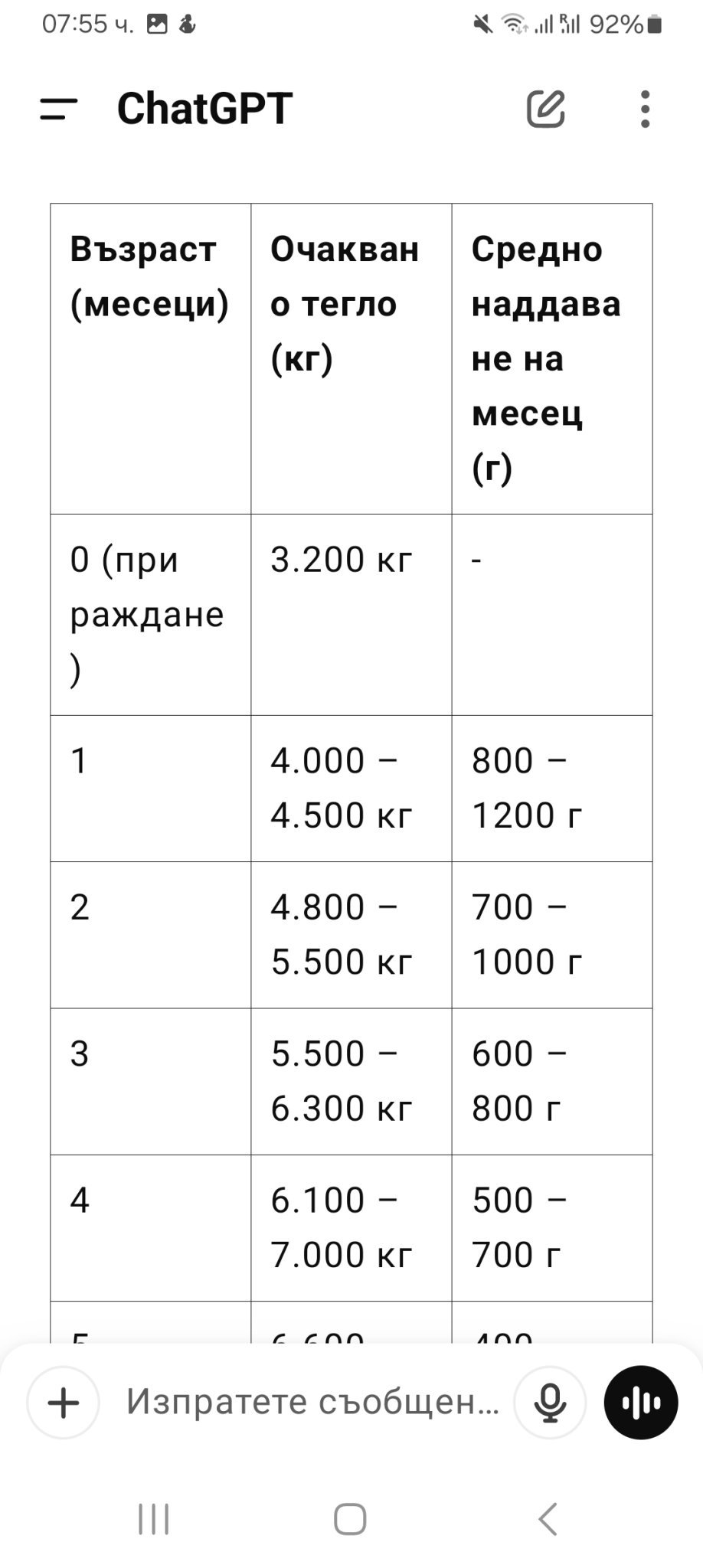 Тези норми да не би да са за кърмени бебета? На мен ChatGPT ми дава по-високи норми за бебета на АМ според СЗО, 50-ти персентил.