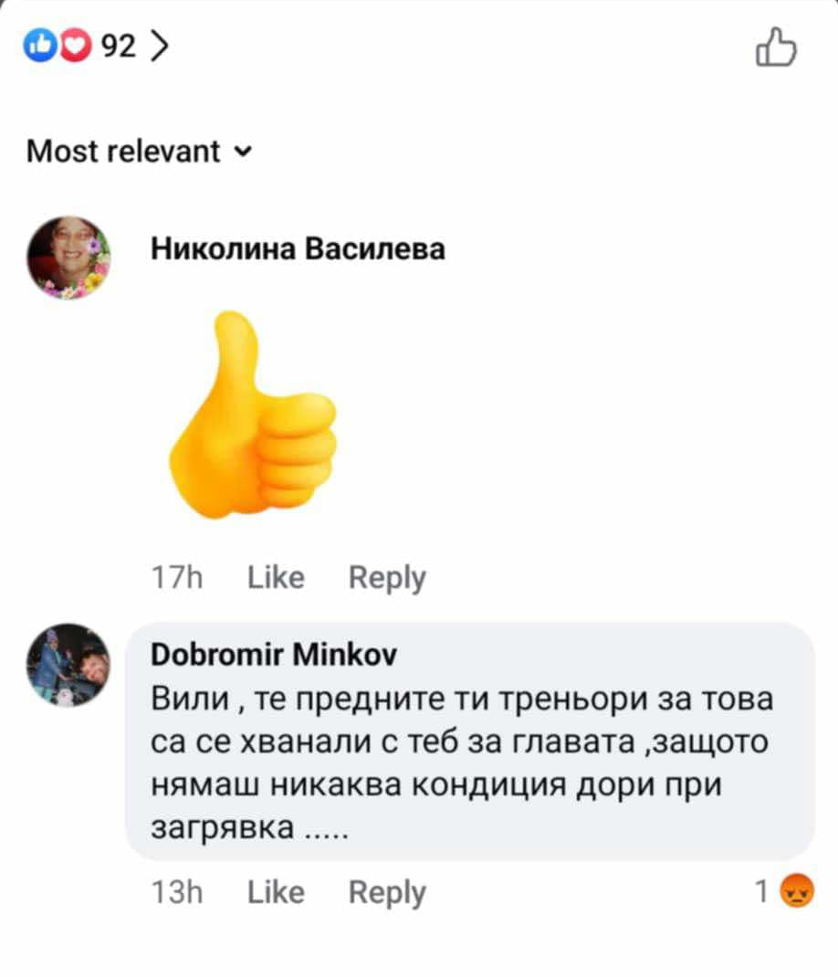 След като русата Вили сподели, че мъжете треньори не се справяли с темперамента й, има и реакция