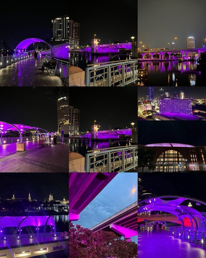 Хареса ми осветяването на Amalie Arena, Тампа, Флорида, в лилаво за концерта на Джин.