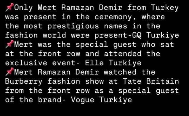 Burberry, с 20 милиона последователи, представи турско име за първи път, като сподели тази снимка на #MertRamazanDemir в официалния си акаунт в Instagram.