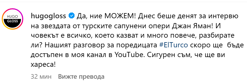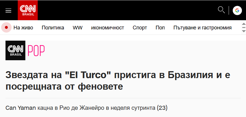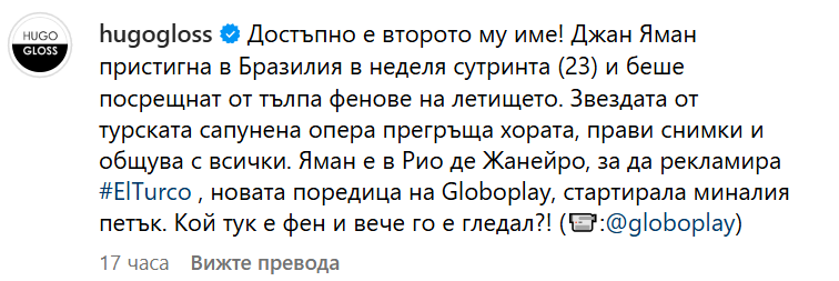 Джан снощи последва Хюго Глос - най голямата Бразилска медия за развлечения:
