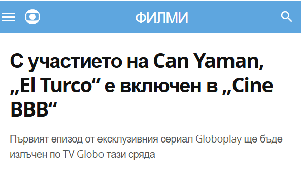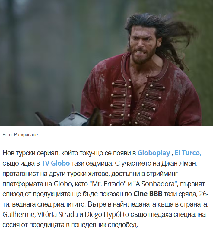 El Turco с участието на Can Yaman, е включен в "Cine BBB" Първи епизод от утре, сряда, 26 март, веднага след BigBrotherBrasil