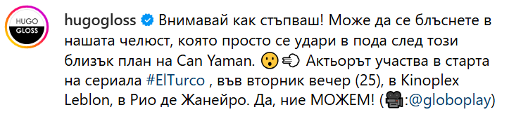 Популяризирането и вниманието, което Ел Турко получава в Бразилия, са наистина изключителни! Джан е ходеща реклама просто.... Глобоплей и те са невероятни!