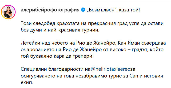 "Джан Яман съзерцава очарованието на Рио де Жанейро