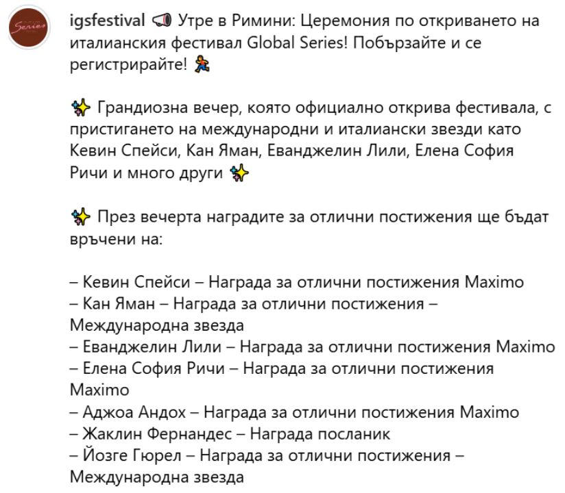 Оооо, нашето Йозгенце ще получи награда на фестивала.