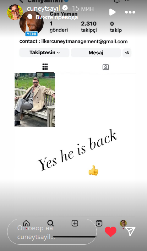 Бившата жена на братовчеда на комшийката на журналиста е видял Джан и Гьозде (актриса) да излизат ръка за ръка от апартамента й (в Истанбул) и не се е сетил да ги снима .. Хаха, турските журналя ги признавам за пълни интриганти и идиоти вече!