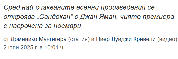 Точно си викам, че него го няма във Voyо и като влязя...хоп на първа страница Джан Яман 😀