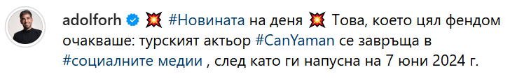 📌Джан Яман се завърна в социалните медии, с които се сбогува миналата година.