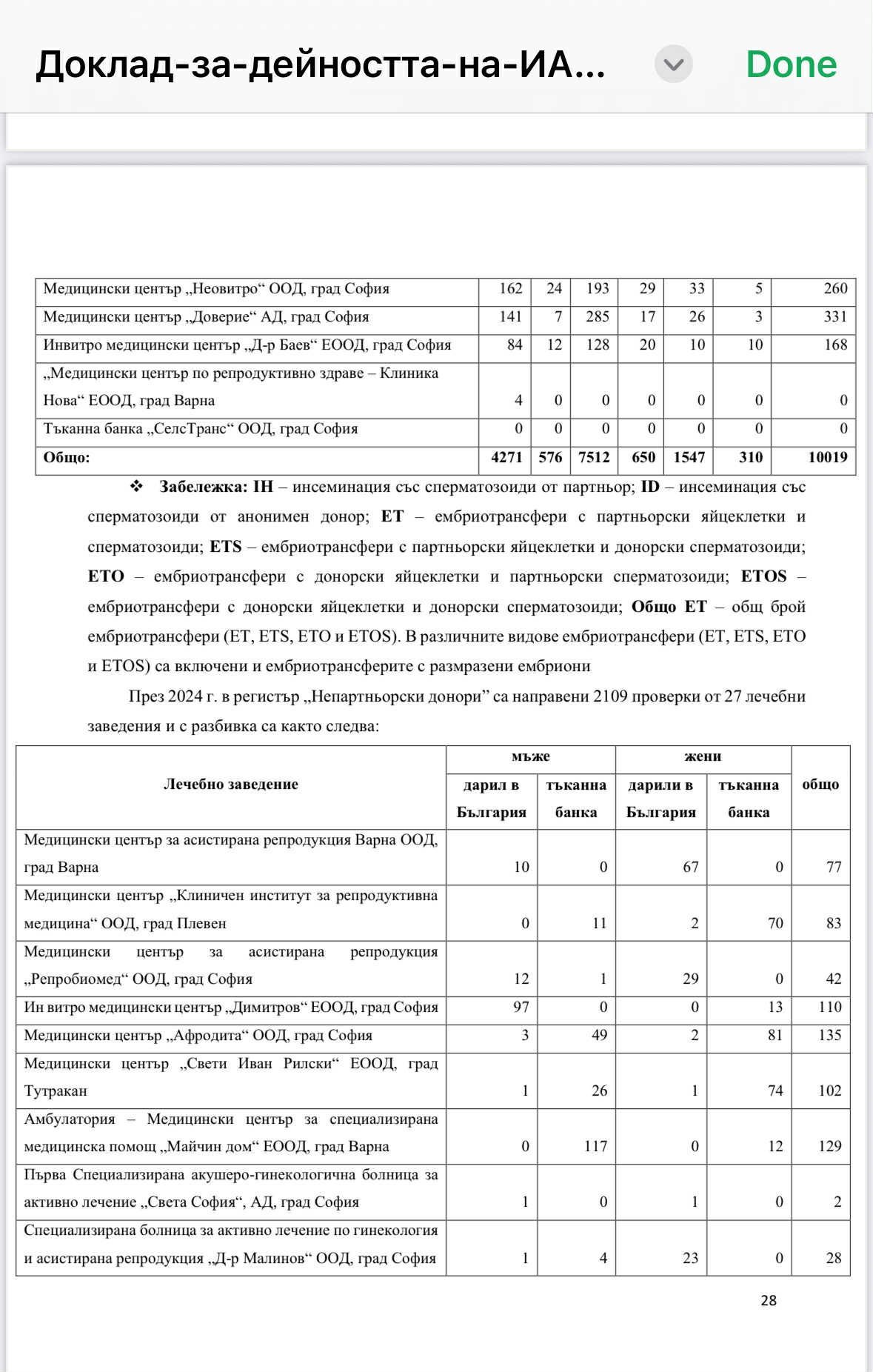 Ето част от доклада от 2024 година на ИАМН