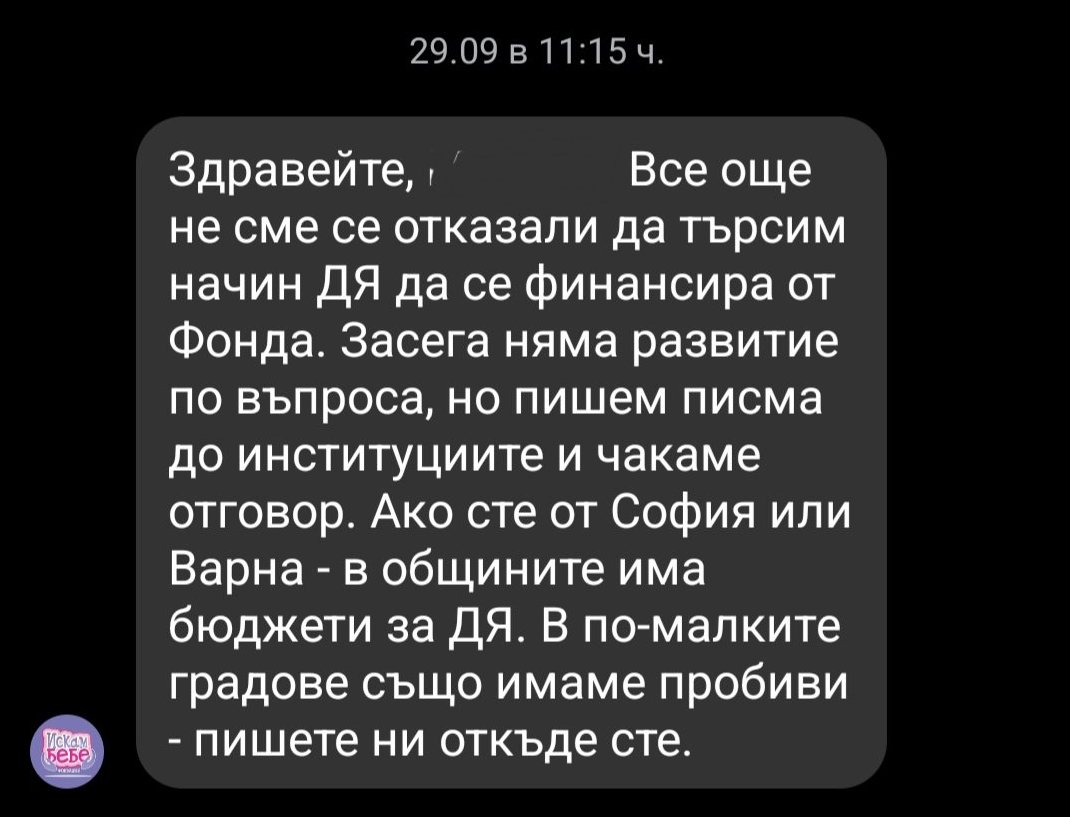 Преди две седмици писах на фондацията "Искам бебе" с въпрос има ли напредък по темата. Отговориха ми това: