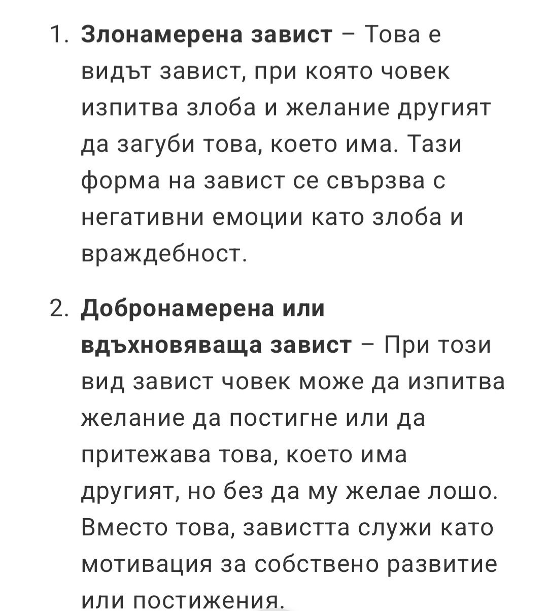 "Завист е чувство на досада и злоба, предизвикано от нечии успехи, благополучие или положителни успехи"