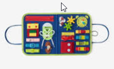 Аз ги взех много отдавна. Сигурно към 7м и още вървят, но те са малко като специални играчки. Давам ги рядко то само за успокояване за да седне. В Пепко има една чантичка busy board беше нещо до 20лв макс и има доста неща, повечето са закопчилки, разни връвчици като за завръзване на обувки, часовник, разни други за дърпане с велкро