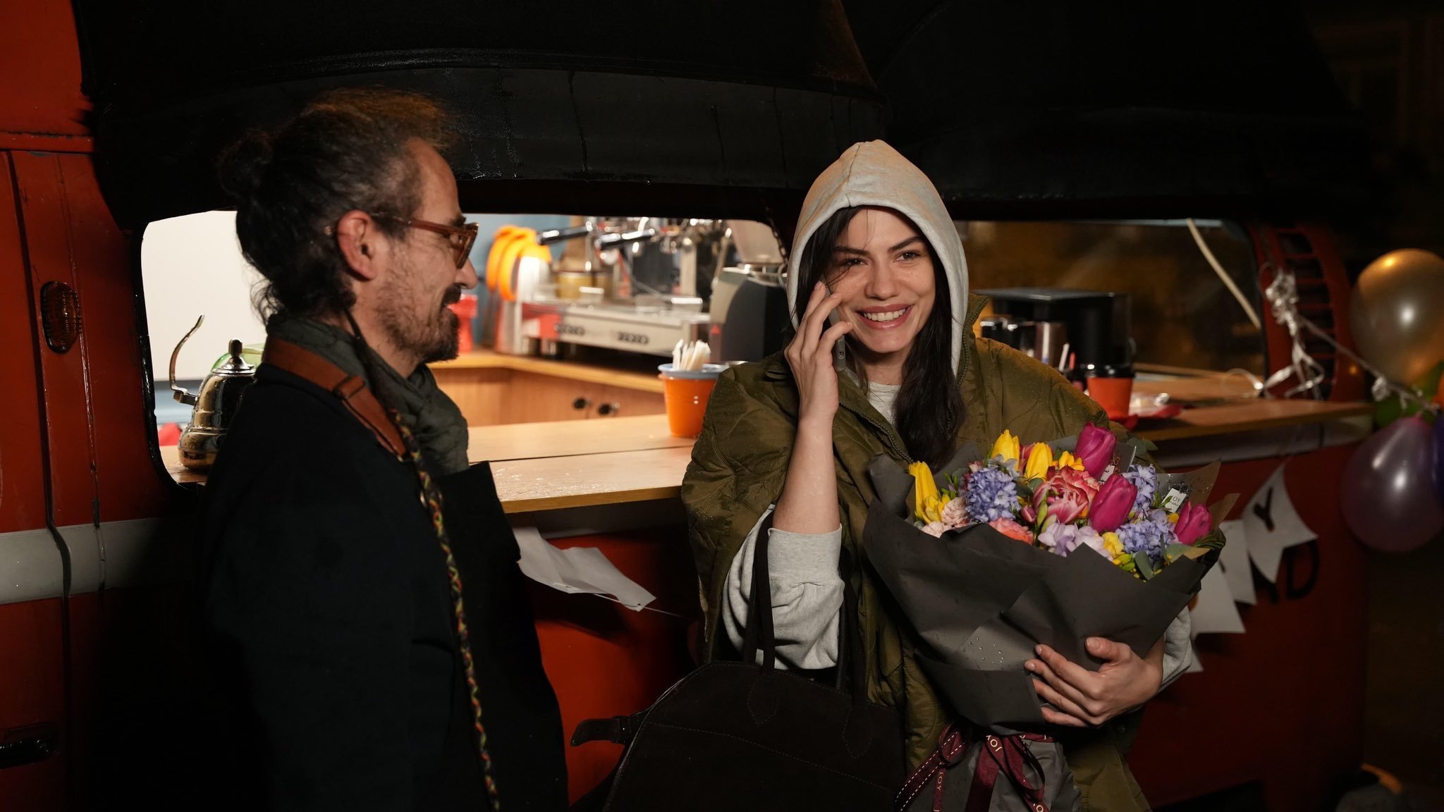 Феновете на Йоздемир, с помощта на екипа на снимачната площадка, донесоха подвижна количка за кафе и сервираха топли напитки на целия екип. Неспособна да скрие изненадата си, Йоздемир разряза тортата за рождения ден, докато разговаряше с феновете си по телефона.