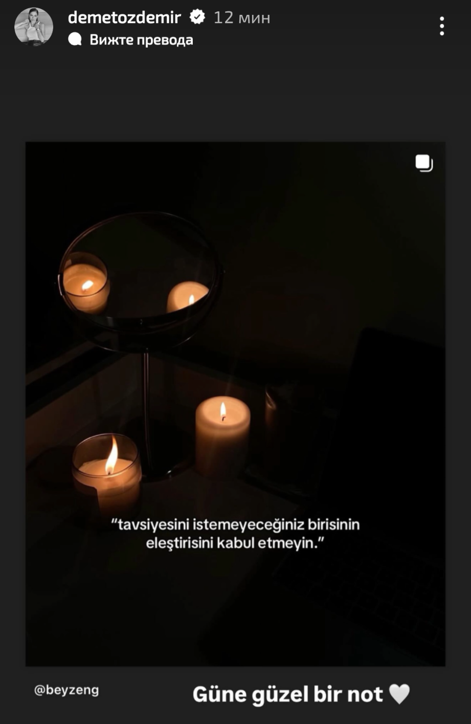 Относно Кадир - Демет никога не го е следвала в Инстаграм и винаги след развода си е избягвала въпросите за личния ѝ живот. Всъщност за Кадир разбрахме от хейтърите на Демет, които стигнаха до там да разследват чия собственост е хотелът в Мадрид, където беше отседнала малко преди нова година '24. Това обикновени анти фенове, няма как да го достигнат като информация... Демет по никакъв начин не е афиширала връзката си, но явно и така е трън в очите на някои хора. Ако сега съдят по липсата на Кадир на рождения ѝ ден, миналата година също не беше видян на участието на Ана Виси, което не значи, че в някакъв момент не е бил. Все пак говорим за частни партита с контролиран достъп. Иначе за мен по-показателно е, че Мерт Видинли беше тази година сред гостите на Демет, а той е най-верният пудел на сестрата на Кадир, Гюлнур. Т.е. ако по тази линия имаше някаква драма, едва ли Мерт щеше да предпочете Демет... Те там са една групичка от доста известни личности, които са преплетени като свински черва.