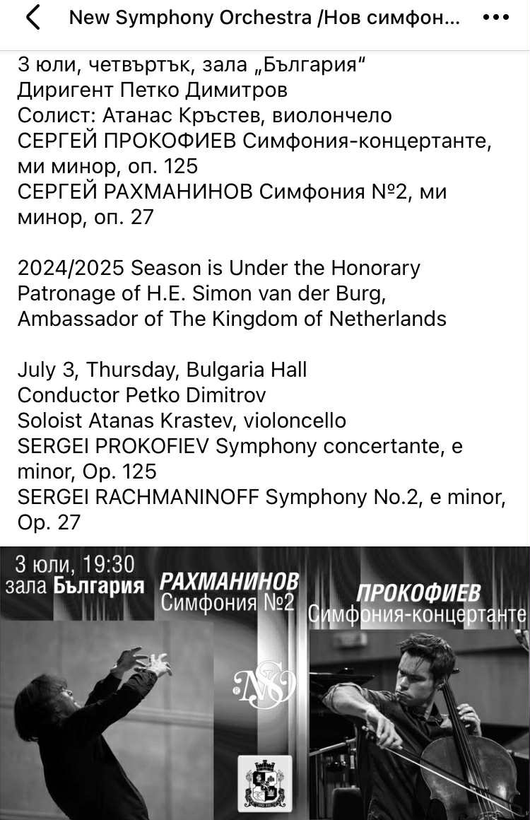 Концерт на Нов симфоничен оркестър на 3 юли: